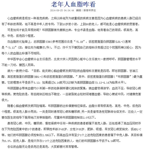 老年人血脂咋看
