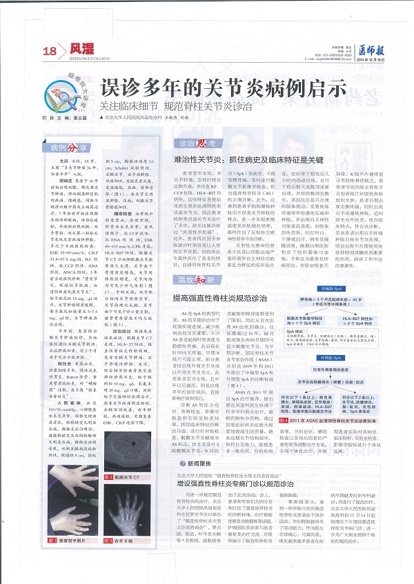 误诊多年的关节炎病例启示