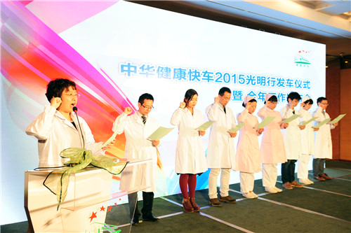 2015年3月25日上午, “中华健康快车2015光明行发车仪式暨全年工作发布会”在北京港澳中心举行。人民医院曲进峰、侯婧、程湧、赵丽丽、林娓5名医护人员将在5月中旬满载着贫困地区人民的希望,奔赴青海海东开展白内障扶贫手术。
