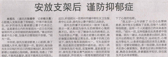 安放支架后,谨防抑郁症