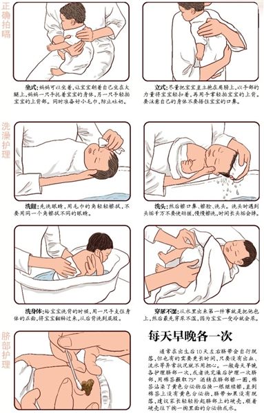 穿尿不湿:从水里出来第一件事就是把他包上,然后最先穿尿不湿,因为宝宝一受冷就会尿。