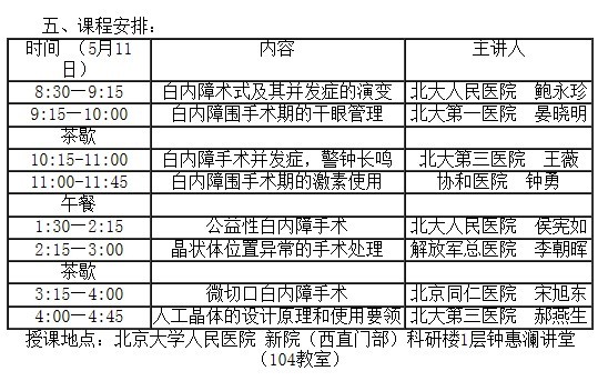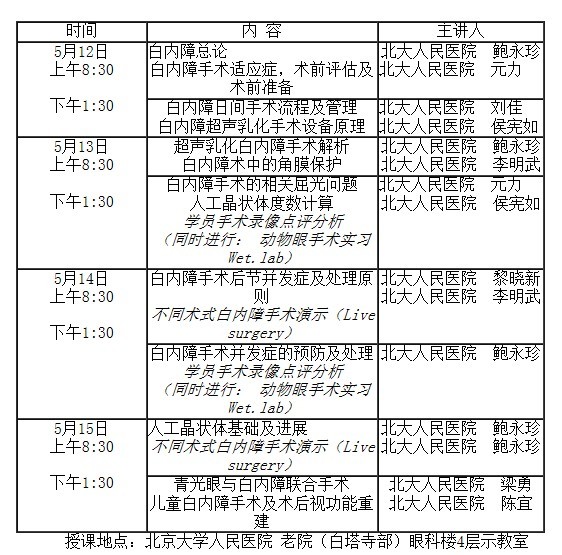 5月12-15日:北京大学人民医院老院(白塔寺部)眼科楼4层示教室