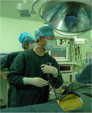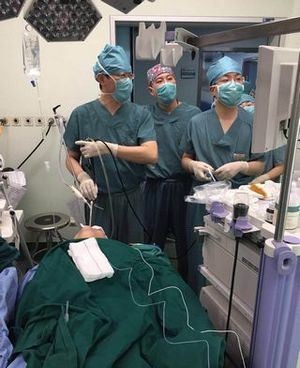 支气管镜检查在呼吸系统疾病诊断、治疗中占有重要地位。呼吸介入诊疗中心目前已拥有各类介入气管镜:电子气管镜、纤维支气管镜、治疗镜、超细支气管镜、荧光支气管镜、高清支气管镜和EBUS气道超声内镜,能够很好地满足临床需要,大幅提高了对患者的诊疗能力。呼吸介入诊疗中心目前开展的技术包括:支气管镜常规检查诊断气道内疾病;经支气管镜行支气管肺活检;经支气管镜支气管肺泡灌洗、全肺灌洗;经支气管镜支气管内植入活瓣肺减容、支气管支架植入、冷冻活检和治疗、氩等离子体凝固介入等治疗技术;床边和急诊气管镜检查和治疗;对乙肝病毒检测阳性者,配备专用支气管镜检查,避免交叉感染。内科胸腔镜对原因不明胸腔积液患者诊治有重要价值,其操作具有简便、创伤小、费用低等优点。目前我科配备有奥林巴斯可曲式电子胸腔镜,开展胸膜疾病的诊断和治疗工作。呼吸内镜洗消和保养至关重要,我科配备专门洗消间,并由经过专门培训的技术人员进行操作,最大限度避免了内镜消毒不严造成的院内感染。