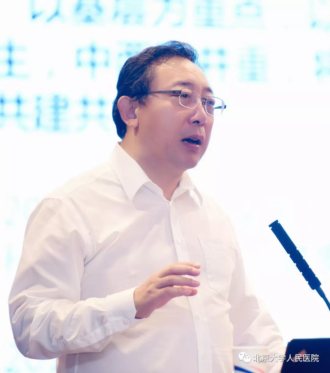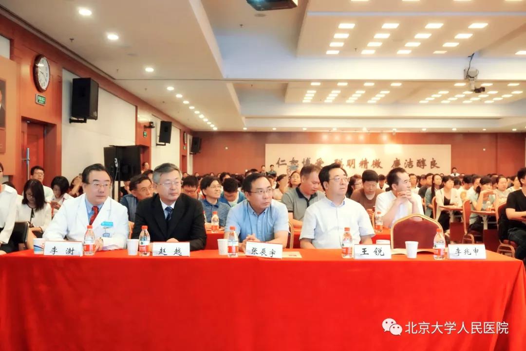 北京大学人民医院院长姜保国、党委书记赵越、副院长张俊、李澍、党委副书记郭静竹等医院领导莅临大会。北京大学医学部科研处副处长樊建军也光临现场。