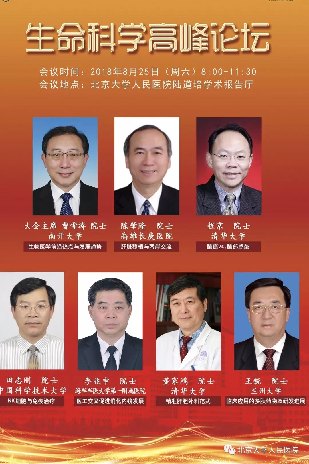 8月25日上午,北京大学人民医院科教楼陆道培学术报告厅里座无虚席,“北京大学人民医院百年华诞系列学术活动之生命科学高峰论坛”在此举行。
