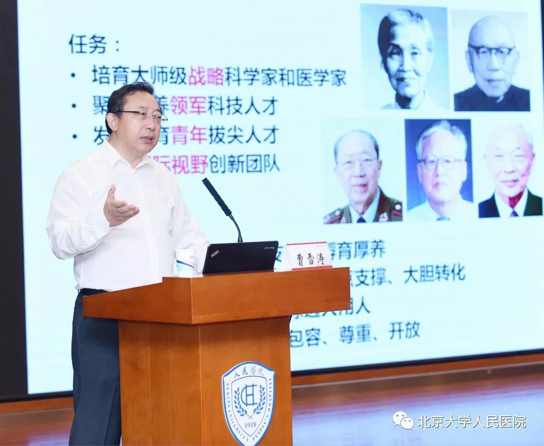 曹院士祝贺北京大学人民医院百年华诞并对医院百年华诞系列学术活动表示充分肯定,指出:北京大学人民医院做为“中央医院”代表着首都和全国领先的学术地位,作为北京大学的附属医院的医学工作者,要有更高的要求,不仅要在提升临床医疗服务能力、培养医学界领军人物上起到引领作用,还要有担当、有创新、有协同精神,在国际学术界发出我们自己的声音,推动中国医学界的发展。