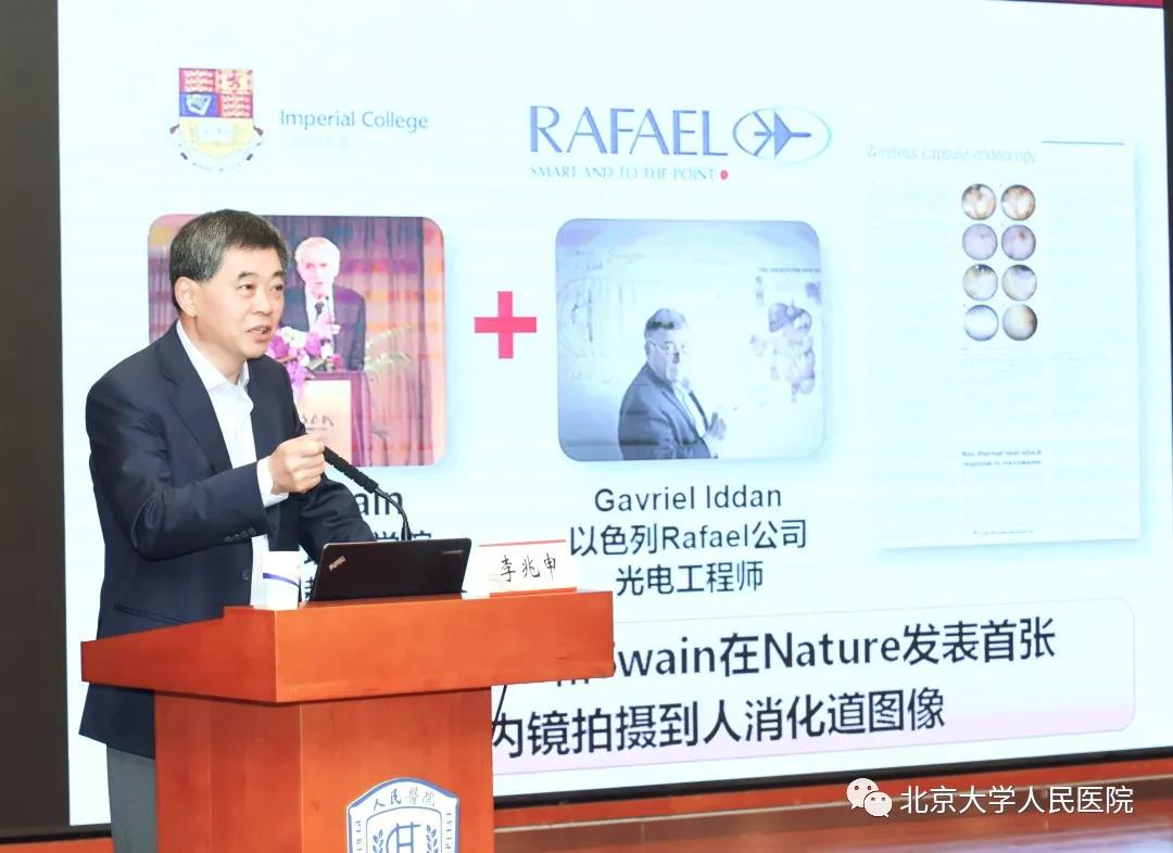 李兆申院士做了题为《瞄准临床难题,医工交叉;促进消化内镜技术发展》的学术报告。医工交叉带来科技创新。在消化内镜技术方面,追求舒适、安全,为消灭小肠盲区,研发小肠胶囊内镜;研发遥控胶囊实现胃部检查,例如磁控胶囊胃镜的研发,并开发遥控胶囊胃镜智能阅片系统,开创新领域应用研究。功能胶囊机器人研发,实现便秘治疗、定向释放药物、遥控活检、肠道微生态研究、治疗肥胖、胆胰管疾病遥控胶囊智能治疗等。在胰腺疾病的微创治疗方面,利用体外碎石加内镜取石技术,清除胰腺多发结石;放射与内镜技术相结合治疗胰腺癌;研发放射性粒子支架植入,放射性粒子消融止痛,放射标记协助精准放疗等医工交叉融合新技术。