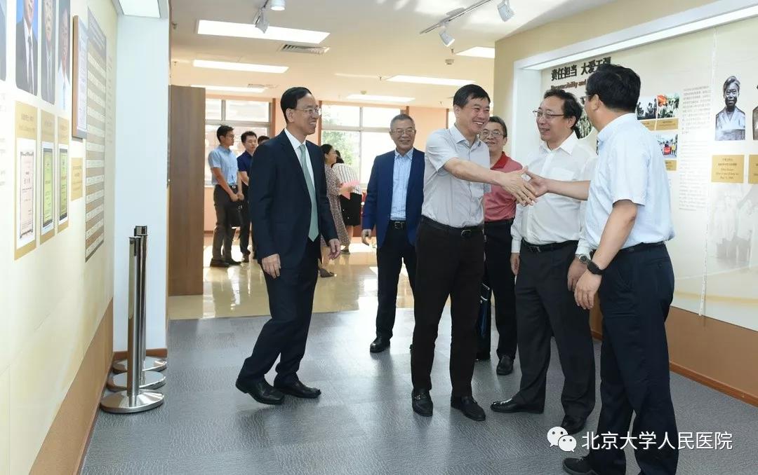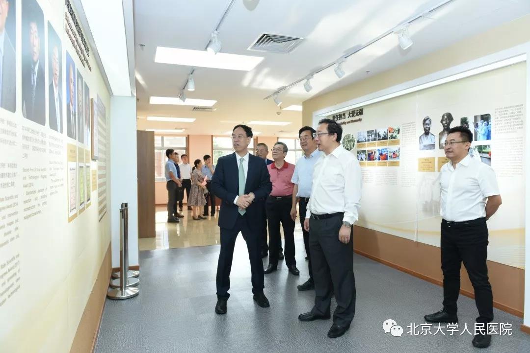 利用活动间隙,在姜院长的引导下,院士们饶有兴趣地参观了“北京大学人民医院百年纪念展厅”,这里回顾和展现了北京大学人民医院100年来薪火传承的创业历程,展现医院发展建设成果。