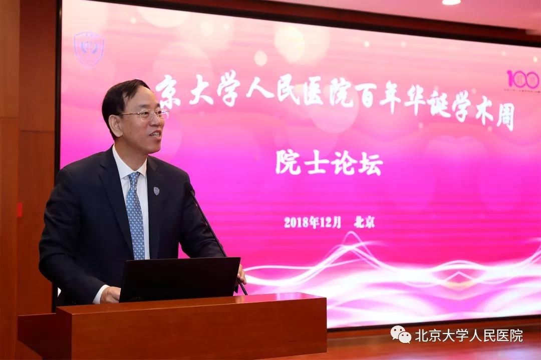 北京大学常务副校长、医学部主任詹启敏院士致辞。詹院士提出,2018年喜事连连,国家正逢改革开放40周年,北京大学迎来百廿华诞,北京大学人民医院迎来建院100周年。百年来,北京大学人民医院为国家培养优秀医学人才、提升临床诊疗技术、推动国家卫生事业发展做出积极贡献,涌现出一大批医学大家。回顾历史,思考发展,谋划未来。今天论坛邀请的几位大家、院士,在中医药、基础研究、临床研究、转化研究、交叉研究等方面取得了重大突破、获得了卓越的成果,相信院士们的学术盛宴将给与会人员带来更多的启迪,指导医院发展,推动医学进步。