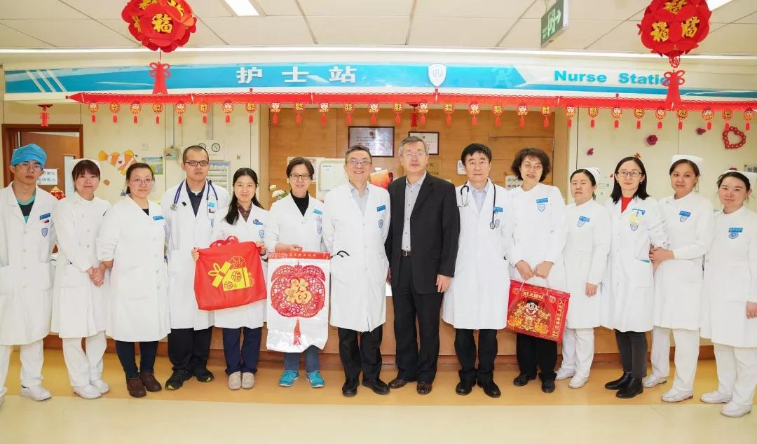 2019年2月3日,北京大学人民医院院长姜保国、党委书记赵越、副院长张俊、刘玉兰、李澍、王天兵,党委副书记陈红松、郭静竹,院长助理洪楠等院领导,以及白塔寺院区和海淀病区负责人,深入门诊、病房一线,走遍医院每一个角落,为奋战在一线的医院职工送上暖暖的新春问候和亲切祝福。