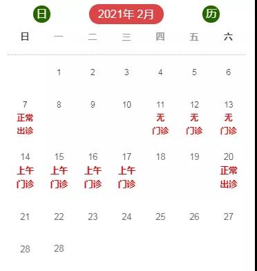 2月7日(星期日)按照周一出诊