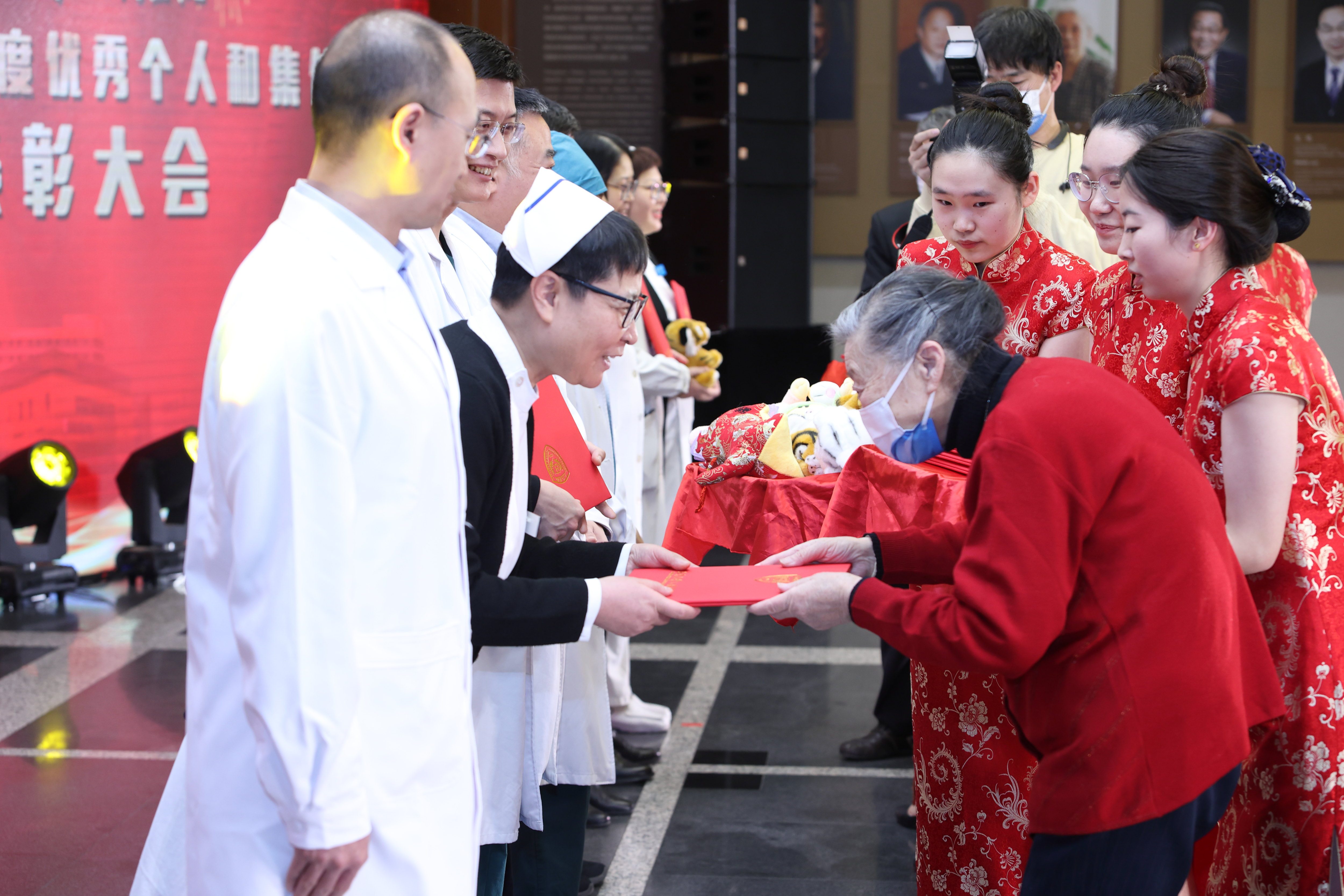 2021年,全院员工用汗水与智慧铺铸了医院的发展之路,创造了一个又一个喜人的成绩,涌现出众多的优秀个人和集体。医院党委书记赵越宣读《北京大学人民医院关于表彰2021年度优秀个人和集体的决定》。医院各科室认真遵循评选条件的要求,自荐、推荐先进个人和集体,再通过严格公正的评选程序,最终评选出杰出员工奖20名,个人单项奖183名,先进工作者奖305名,集体奖18项。老前辈,老领导,医学部、医院领导为各个奖项获奖代表颁奖。