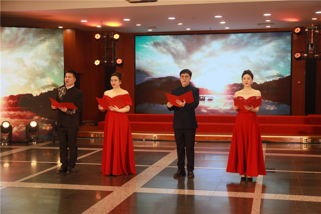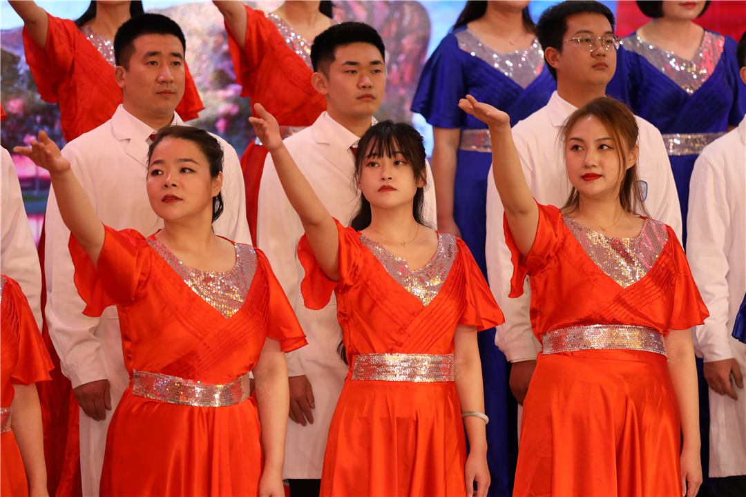 医院员工欢聚一堂,载歌载舞,抒发情怀 放飞希望,展现了“人民人”朝气蓬勃、爱岗敬业、奋发向上的精神面貌,用最美的方式迎接新的一年。积极向上、热情欢快的开场歌舞《青春有你》,展现“人民人”勇于担当,奋斗奉献,立足岗位,建功立业的激情与活力。每个人都有梦想,每个人都有诗与远方。四重唱《少年》用轻快的节奏将大家的热情点燃。让我们一起努力,朝着梦想前进!诗朗诵《百年颂歌》激情讲述中国共产党建党一百周年的光荣历史与人民医院的百年发展。下一个百年,在中国共产党的领导下,人民医院必将开创更辉煌的未来。歌舞《把握每个瞬间》唱出了“人民人”坚守岗位、无私奉献的精神,唱出了“人民人”在每一个国家和人民需要的时刻,挺身而出的勇敢与坚毅。小合唱《星辰大海》通过歌声表达全院职工对未来的美好期待,也唱出了大家团结协作,奉献岗位、建设医院的信心。北京大学人民医院作为冬奥会医疗保障定点医院和场馆保障医院,冬奥会医疗保障团队为赛事提供高质量、国际化、有温度的医疗服务。舞蹈《一起向未来》,既是向医疗队员们表达敬意,为冬奥加油,也展现了“人民人”积极向上的精神风貌。“满怀豪情领略浩荡的风,踏平坎坷我们荣辱与共。实现梦想拥抱天边彩虹,我们昂首再启程,共筑中国梦!”在合唱《共筑中国梦》和《歌唱祖国》的昂扬歌声中,“北京大学人民医院2021年度优秀个人和集体表彰大会”顺利落下帷幕。