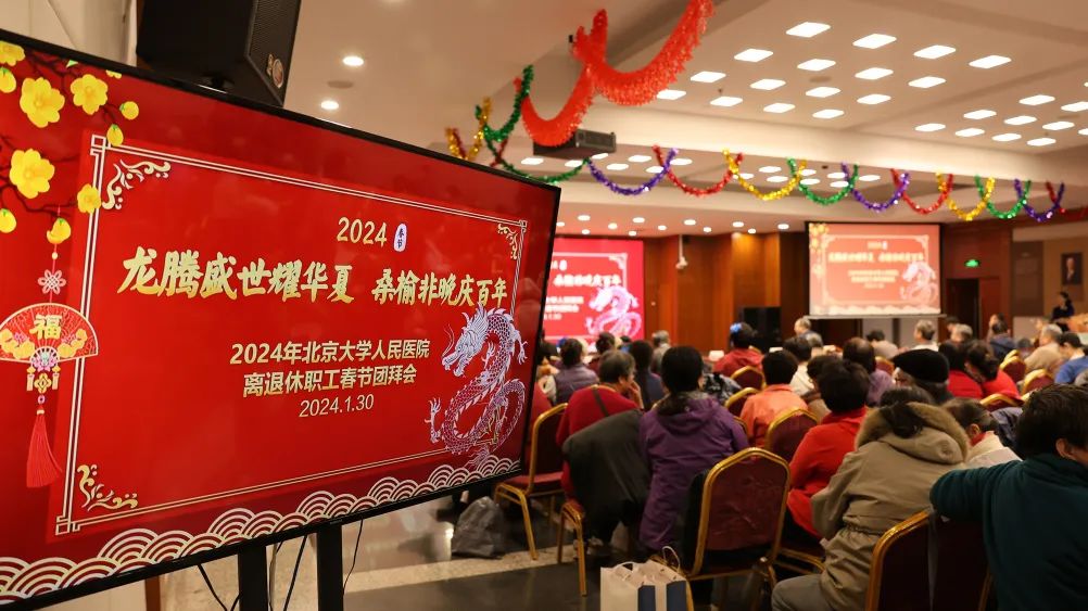 玉兔呈祥辞旧岁,金龙献瑞迎新春,2024年1月30日,在甲辰龙年即将到来之际,北京大学人民医院医院党政领导班子与近四百名离退休老同志欢聚一堂,畅叙情谊,共同庆贺新春佳节,科教楼陆道培学术报告厅不断传来阵阵欢声笑语,暖意融融。医院院长王俊,党委书记王建六,副院长王天兵、杨帆、赵翔宇,党委副书记兼纪委书记陈红松、党委副书记高杰、邵晓凤出席春节团拜会。春节团拜会由党委副书记邵晓凤主持。