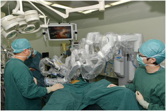 外科手术机器人,又称“达芬奇(da Vinci)手术机器人”、“内窥镜手术器械控制系统”,通过使用微创方法,实施复杂的外科手术,是目前世界上最先进的手术平台。机器人手术目前主要用于普外科(肝胆、胰腺、胃肠道、甲状腺等)、心脏外科、胸外科、泌尿外科、妇科、小儿外科、咽喉头颈外科等。在手术时,外科医生可以远离手术台坐在操纵台中,双手握住手柄,同步控制患者体内的机械臂手术器械进行手术,所以完全不同于传统的直接将手伸入患者体内进行手术的概念。