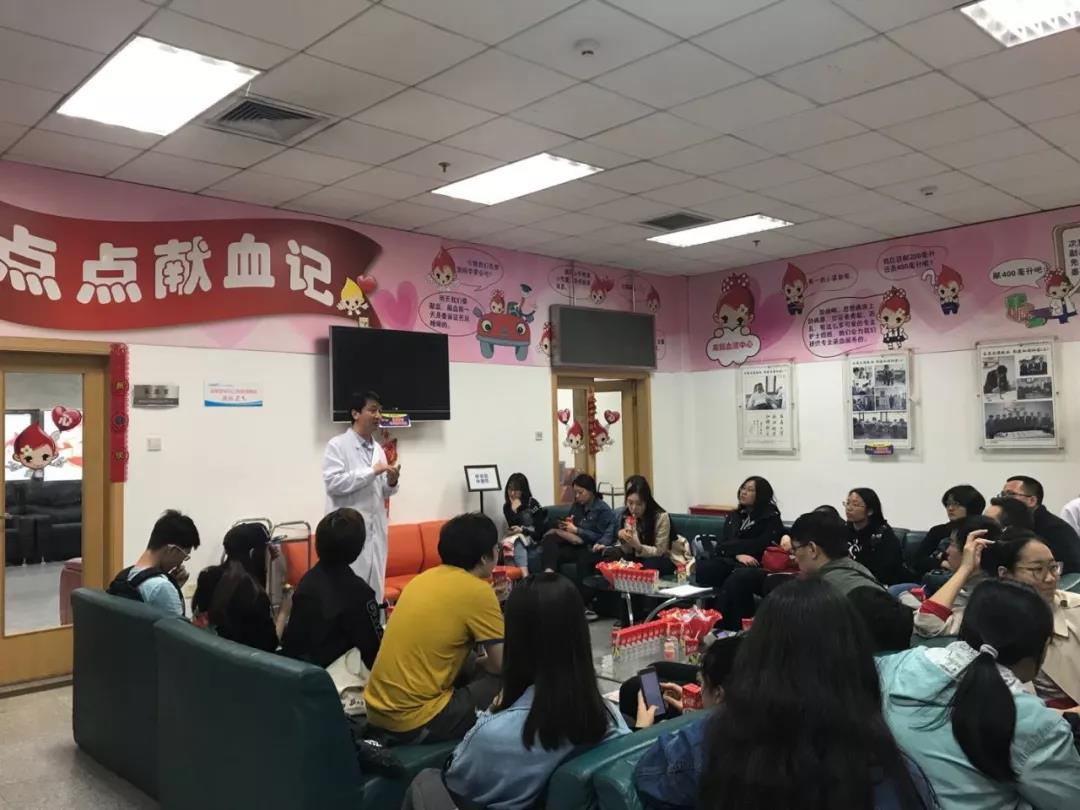 参观完各实验室之后,同学们来到休息区。老师向同学们讲解了献血的规范化流程。从填写征询表开始,自我排查,信息系统的筛查等。包括献血者的年龄(我国规定献血者年龄应处于18-55周岁)、献血间隔时间(如献全血应至少间隔半年、献血小板应至少间隔2周)等信息。随后进行初步体检(如血压、体重等),初筛(主要包括血红蛋白、乙肝及其他疾病、转氨酶、血型等),开始血液采集,最后需休息确保安全才能离开。整个献血流程处于严格的质量把关,不仅保证了献血者的安全,也是对治疗用血及血液制品质量的保障。