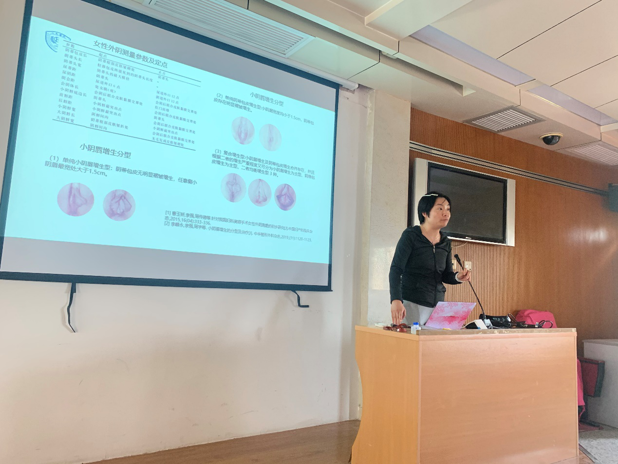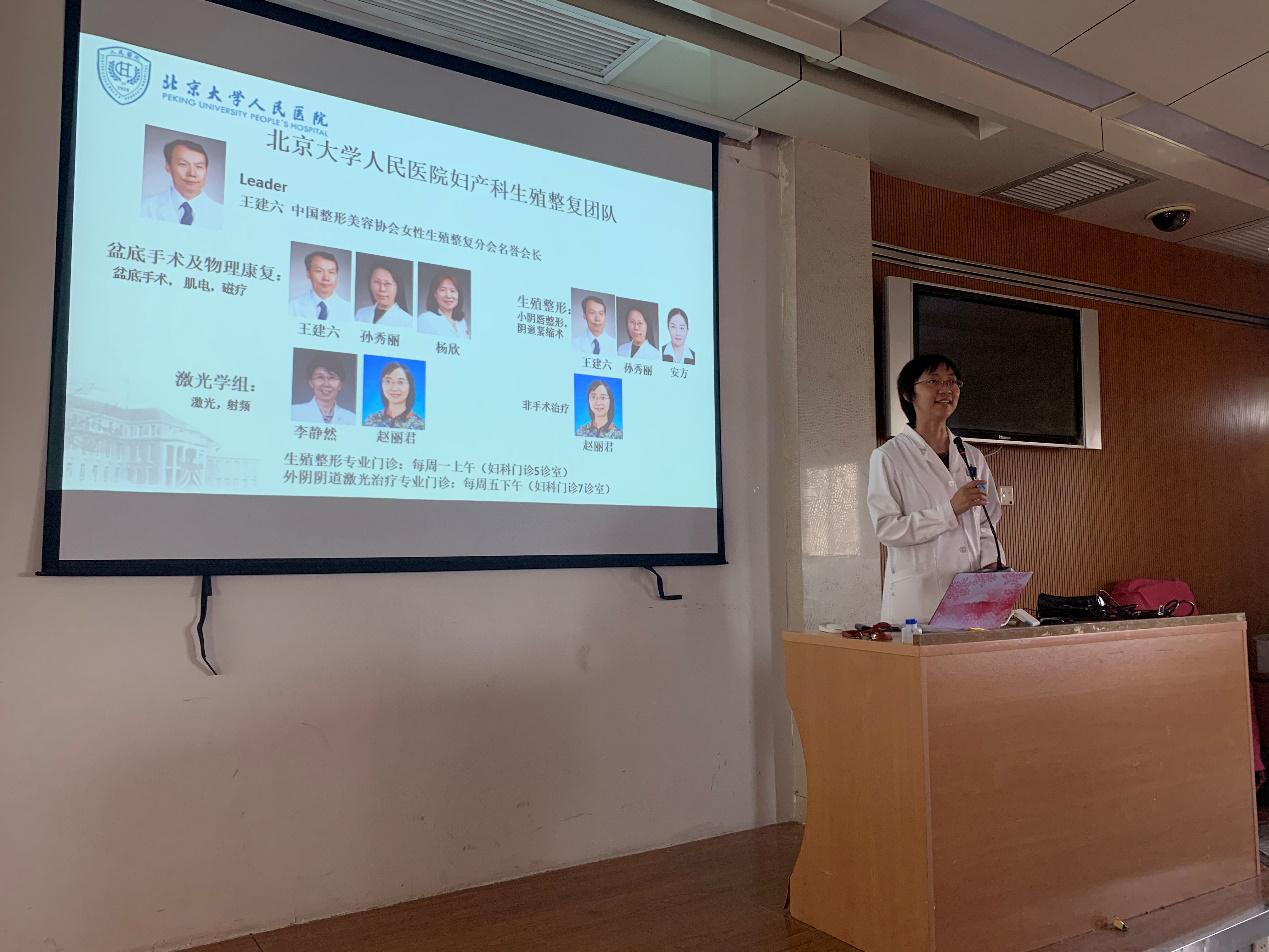 随后,妇科赵丽君医生介绍了妇科女性生殖整复专业团队成员,在王建六教授的带领下,团队蓬勃发展,开展了多项生殖整复项目,可以利用多种治疗手段全方位、多角度解决女性生命周期的生殖整复问题,提高女性生活质量,增进家庭幸福。并结合妇科开展的二氧化碳点阵激光及射频等治疗方法对生殖整复的非手术治疗做了精彩详细介绍。