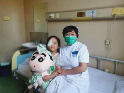 40床的小妹妹是六一当天手术的患儿,刚刚回到病房由于双眼遮盖,加之麻醉后有点不适,刚回病房后恐惧不安,眼科的医护人员为了安抚她的紧张情绪,把毛绒娃娃放到了孩子身边。看到可爱的玩具,她立刻就安静了许多。依偎在妈妈和玩具之间的孩子,显得格外踏实听话。