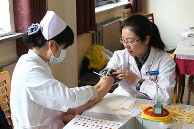 骨关节科的李志昌大夫是今天第一名献400ml的职工,由于今天他还要出门诊,早饭都没顾上吃,放下衣袖就往门诊跑。“不说了,我的病人还等着我呢!” 一个刚刚献了400ml献血的人,撂下这句话就像什么也没发生一样一溜烟跑向门诊了。前来献血的除了要出门诊的大夫,还有马上要上手术的大夫。胸外科的卜粱大夫今天受到了“加塞儿”的优待,由于他马上就要上手术,负责组织工作的工会老师一路给他开绿灯,让他不用排队,血液检测合格后马上就献上了。刚献完血,还来不及坐下休息,甚至吃点东西,他就风风火火的跑了。因为在医院工作,对于用血有切身的感受,大家深知鲜血的宝贵。急诊科的孙红护士长和肝胆外科的陈雷医生都说,因为在临床平时手术、抢救病人经常要急用血,鲜血就是生命之源。医者仁心,只有他们才更能体会这温热的血液的分量。