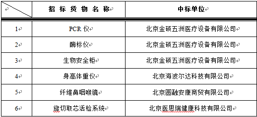 我院于2016年8月4日对以下设备进行院内谈判,中标结果如下: