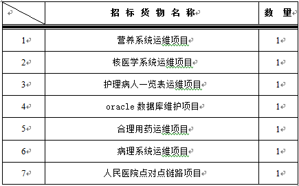 一、为满足临床科室需求,设备处拟对以下系统维护进行谈判采购,采购项目的内容及数量:
