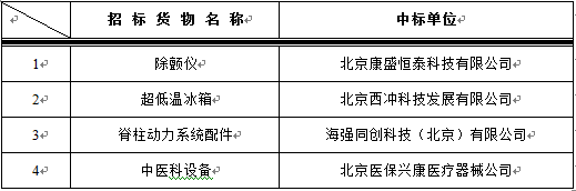 我院于2016年12月15日对以下设备进行院内谈判,中标结果如下: