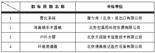 我院于2017年3月10日对以下设备进行院内谈判,中标结果如下: