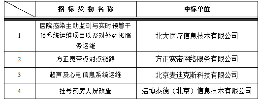 我院于2017年4月20日对以下信息运维改造项目进行院内谈判,中标结果如下: