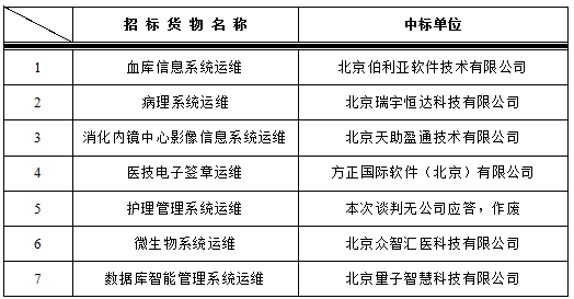 我院于2017年5月9日对以下信息运维项目进行院内谈判,中标结果如下: