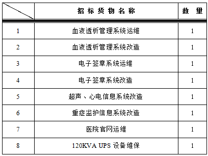 一、 为满足医院信息系统建设需求,信息中心拟对以下信息系统运维改造进行谈判采购,采购项目的内容及数量: