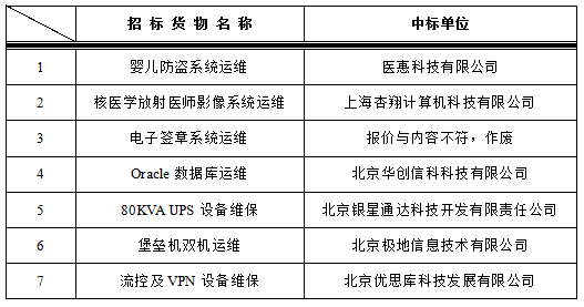 我院于2017年6月1日对以下信息运维项目进行院内谈判,中标结果如下: