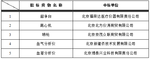我院于2017年10月11日对以下医疗设备进行院内谈判,中标结果如下: