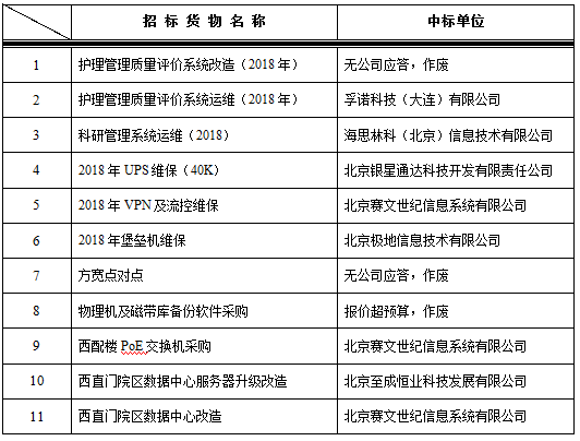 我院于2018年5月31日对以下信息系统项目进行院内谈判,中标结果如下: