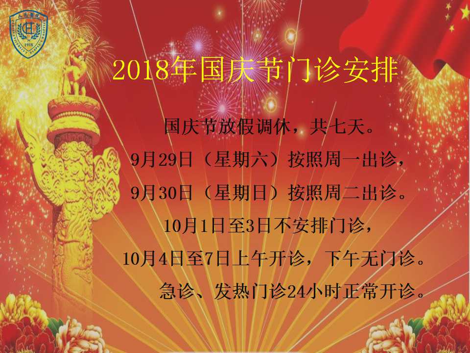 2018年国庆节门诊安排