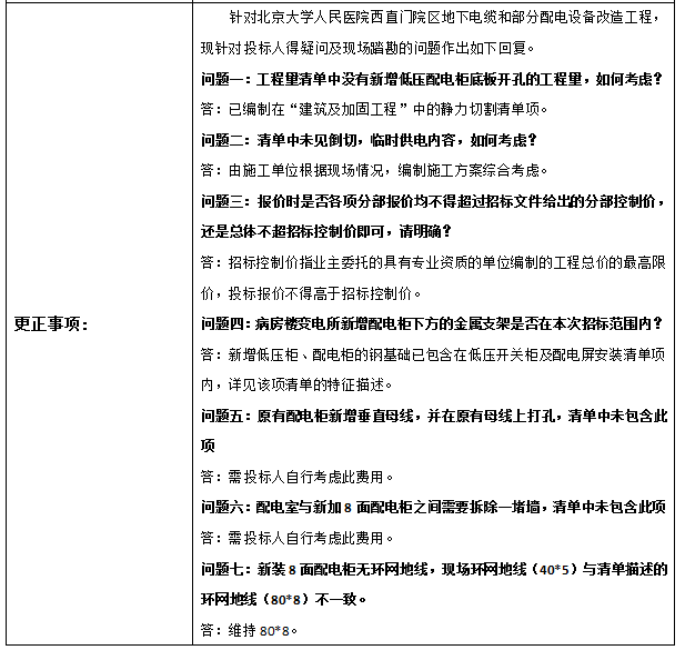 北京大学人民医院西直门院区地下电缆和部分配电设备改造工程更正公告
