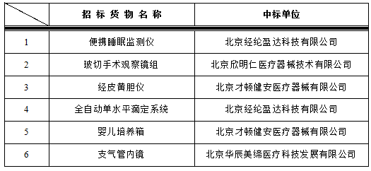 我院于2019年3月21日对以下医疗设备进行院内招标,中标结果如下: