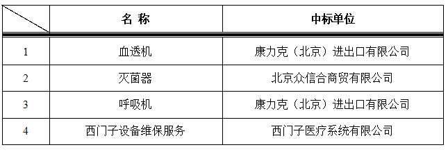 我院于2020年5月28日对以下医疗设备/服务进行院内招标,中标结果如下:
