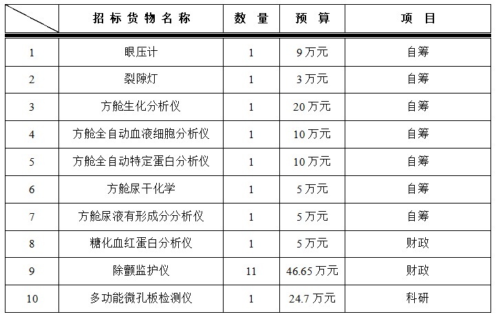 为满足临床科室需求,医学装备处拟对以下设备进行院内招标采购,采购项目的内容及数量: