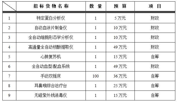 为满足临床科室需求,医学装备处拟对以下设备进行院内招标采购,采购项目的内容及数量: