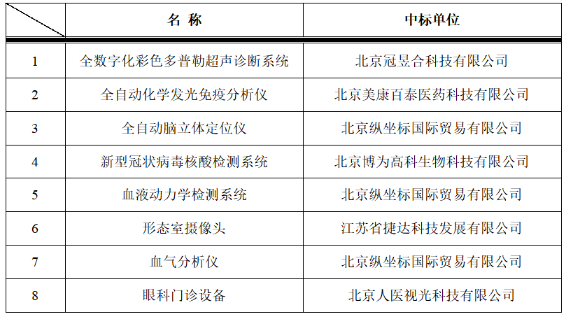 我院于2021年9月29日对以下医疗设备进行院内招标,中标结果如下: