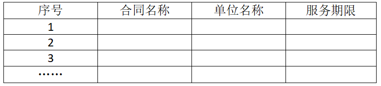 (6)投标公司需提供近3年(2018年、2019年、2020年)承担过医院类似服务项目业绩,提供业绩一览表(格式统一如下,并加盖公章),及对应的合同复印件(至少包含合同首页、签章页并加盖公章)。