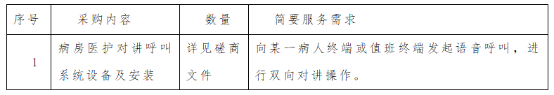 采购需求:通州院区病房医护对讲呼叫系统设备及安装