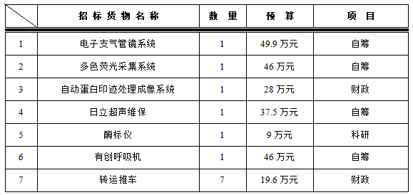为满足临床科室需求,医学装备处拟对以下设备及服务进行院内招标采购,采购项目的内容及数量: