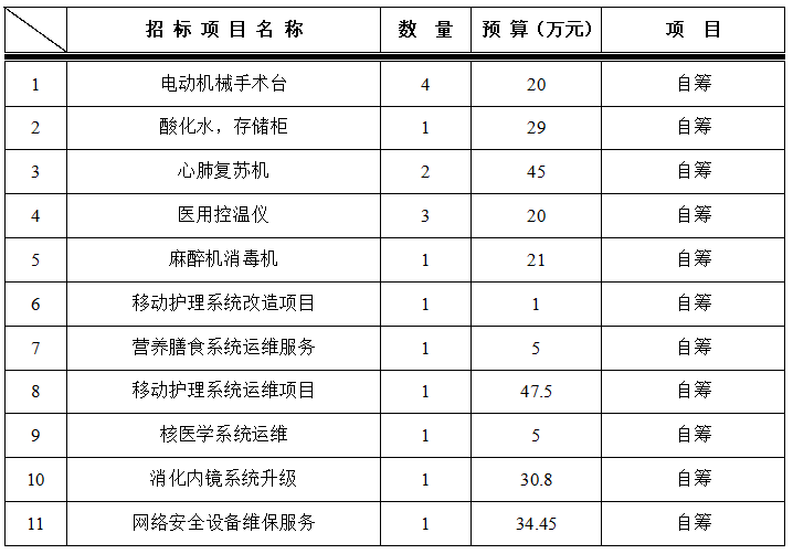 为满足临床科室需求,医学装备处拟对以下设备及服务进行院内招标采购,采购项目的内容及数量: