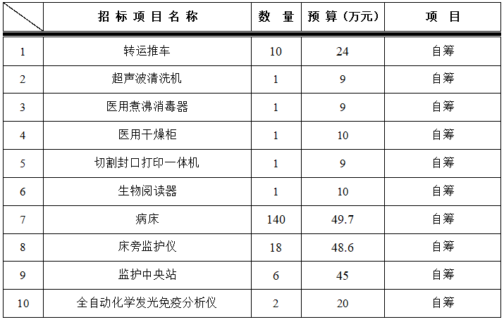 为满足临床科室需求,医学装备处拟对以下设备进行院内招标采购,采购项目的内容及数量: