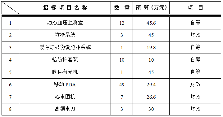 为满足临床科室需求,招标采购中心拟对以下设备进行院内招标采购,采购项目的内容及数量: