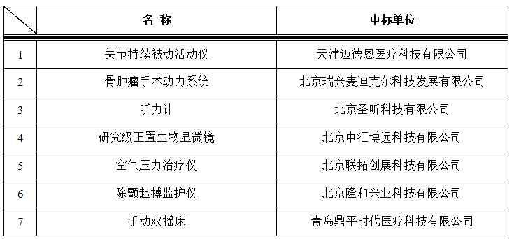 我院于2022年9月29日对以下医疗项目进行院内招标,中标结果如下: