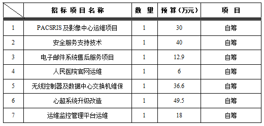 为满足临床科室需求,招标采购中心拟对以下信息项目进行院内招标采购,采购项目的内容及数量: