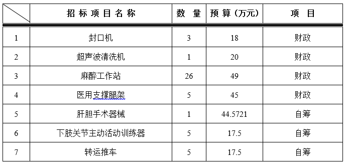为满足临床科室需求,招标采购中心拟对以下设备进行院内招标采购,采购项目的内容及数量: