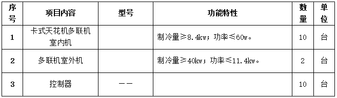 项目概况:为优化医院空间,配套L形自助设备用房使用采购多联机,具体参数如下: